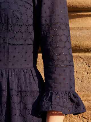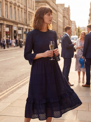 Structured waist, ruffle cuff, tiered hem. Made to order in our Winchester studio.