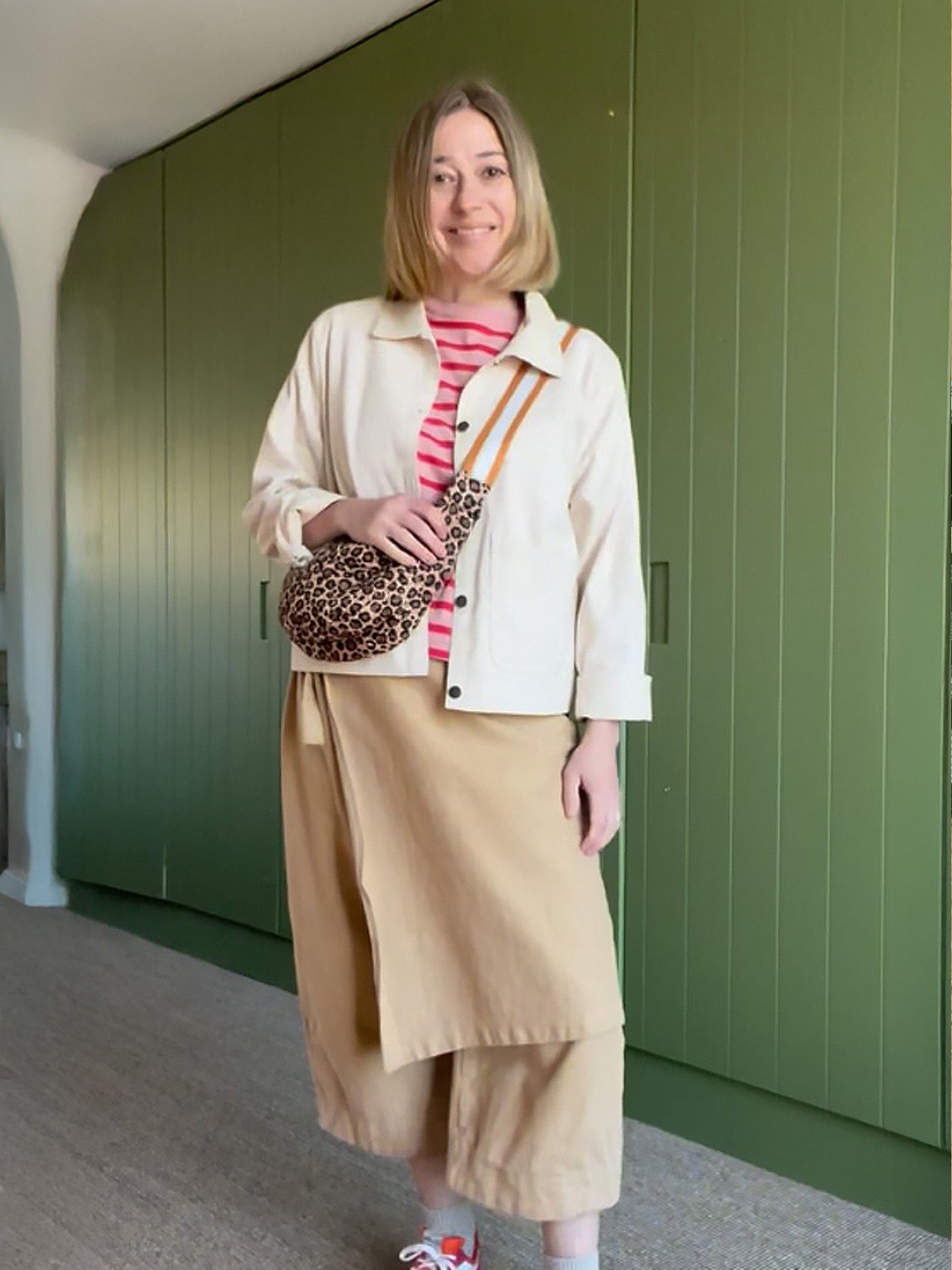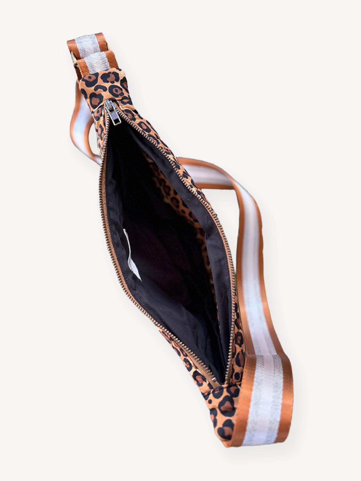 The perfect day bag for all your essentials. The interior has a small pocket and is fully lined. An adjustable strap can be worn cross-body or over the shoulder. A metal zip keeps the bag closed at the top. Made from the small leftovers from The Well Worn Dresses and Tops Approx measurements - height 18cm & width 29cm.