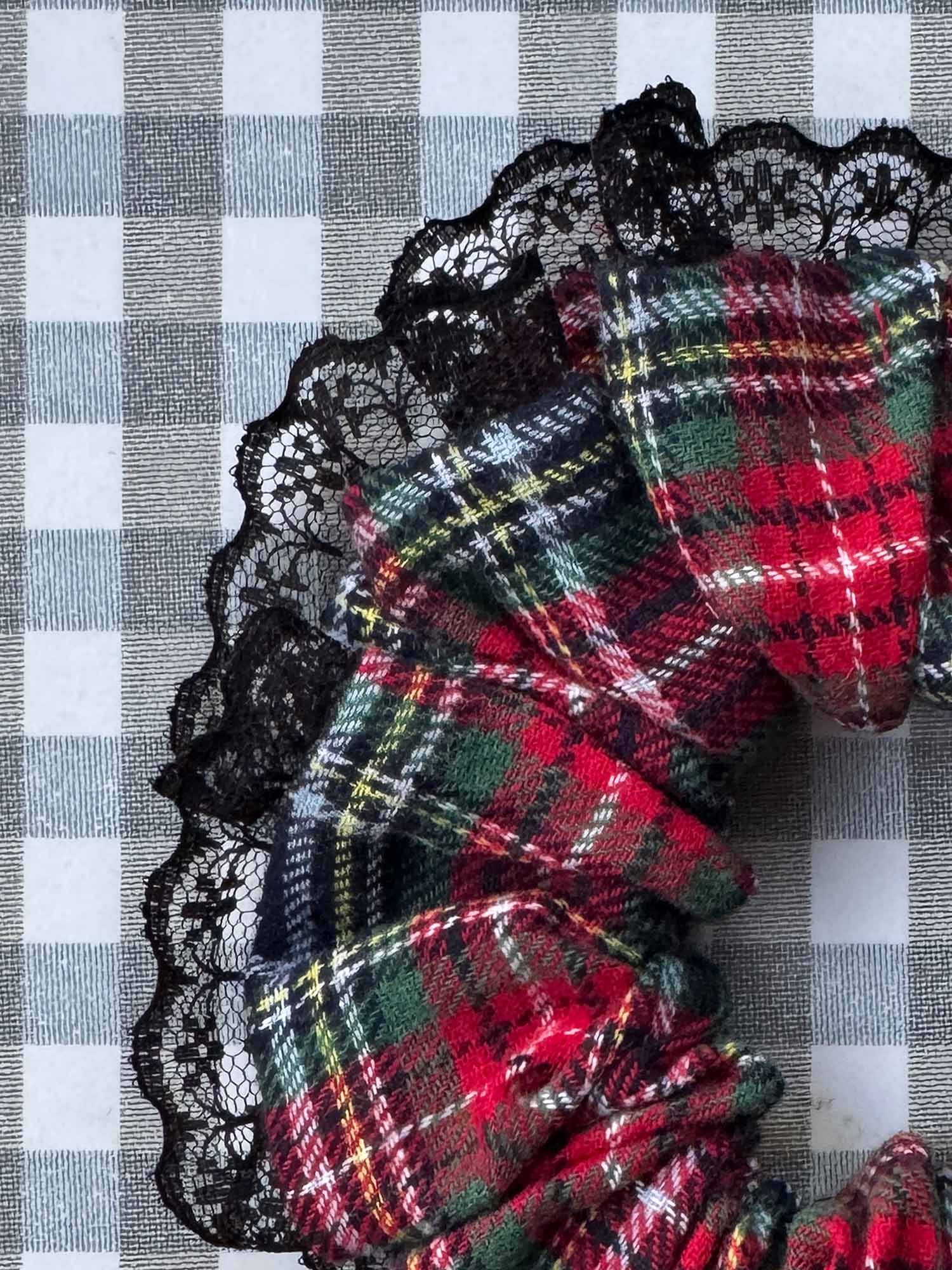 Add a festive twist to everyday styling with our Tartan Lace Scrunchie, handmade in our Winchester studio. Crafted from soft woven tartan and finished with a subtle black lace edge, it offers volume without pulling or snagging — an easy statement for ponytails, buns, or simply worn on the wrist.