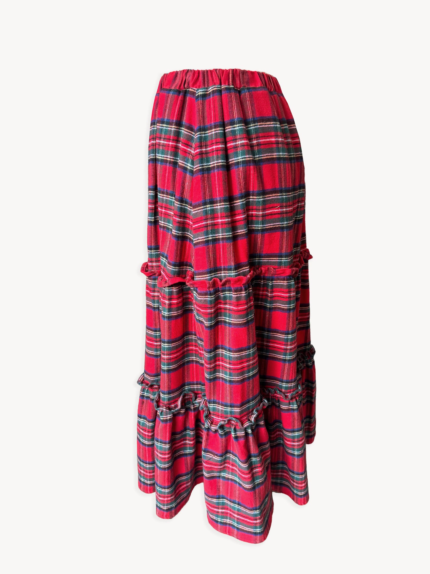 Bold, joyful, and full of movement. The Rosalie Skirt is made in Hampshire from soft brushed 100% cotton in traditional Red Stewart tartan — a fabric that feels as festive as it looks.