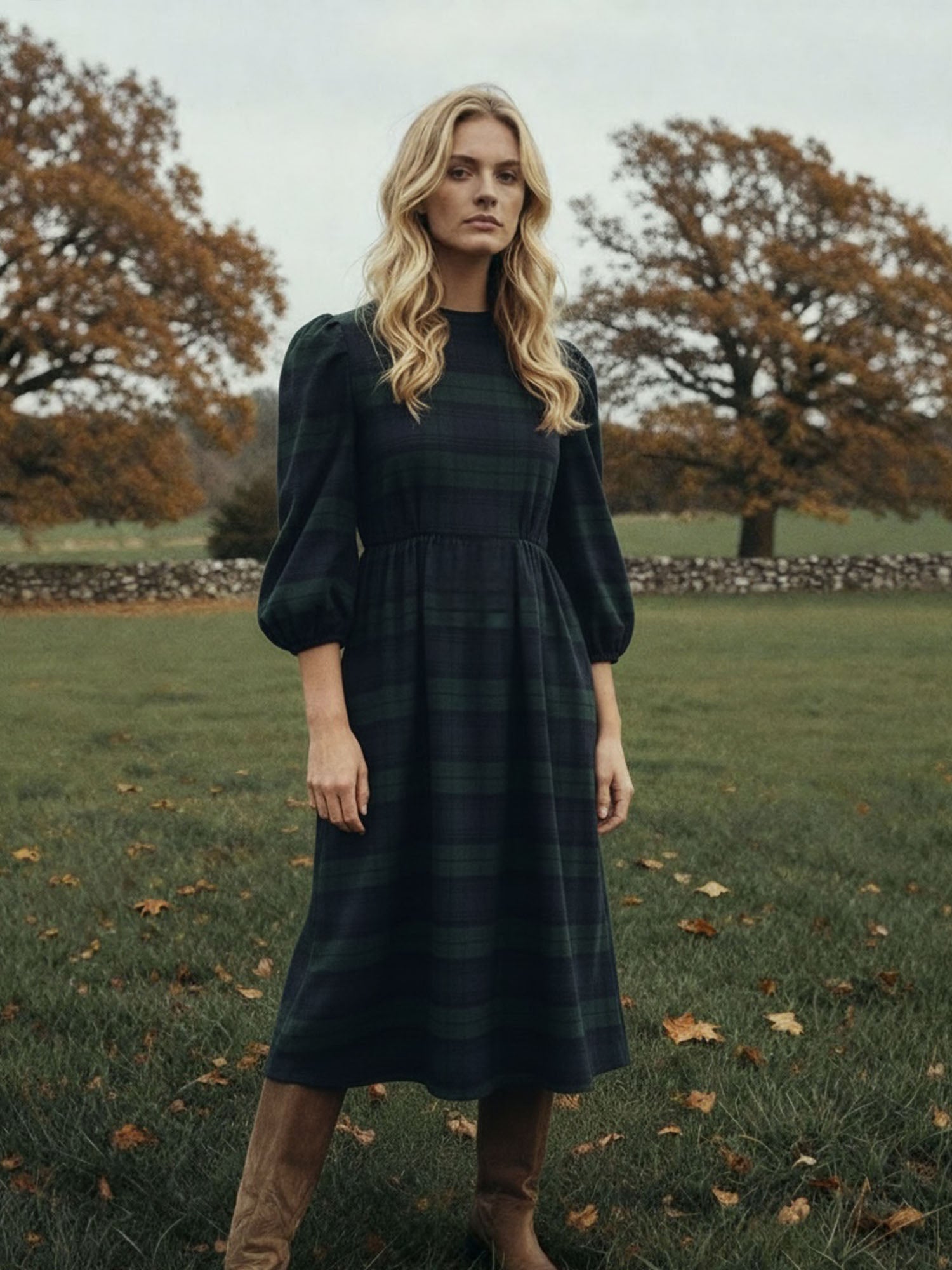 A modern classic cut from heritage cloth. The Maisie Dress is made in Hampshire from 100% mid-weight cotton in timeless Blackwatch tartan — a nod to British heritage reimagined for today.
