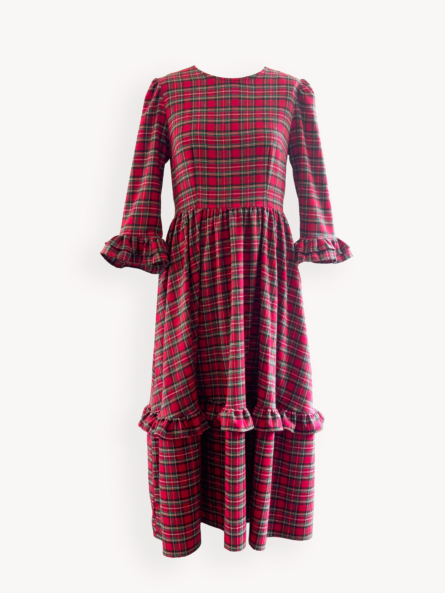 The Felicity Dress features a classic Red Stewart tartan weave that pays homage to British heritage, with a modern, flattering silhouette that effortlessly compliments any figure. Thoughtfully designed with sustainability in mind, this dress is crafted from eco-friendly, responsibly resourced materials, ensuring that you not only look good but feel good about your impact on the planet.