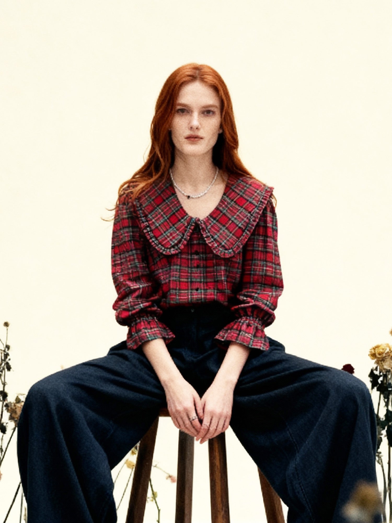Embrace effortless style with the Red Tartan Collar Luna Blouse—a playful nod to classic tartan with a contemporary twist. Designed in an oversized, slightly boxy silhouette, this blouse embodies that laid-back, cool vibe you love. The bold red tartan collar is the standout feature, and the soft, washed fabric that feels like you’ve had it forever.