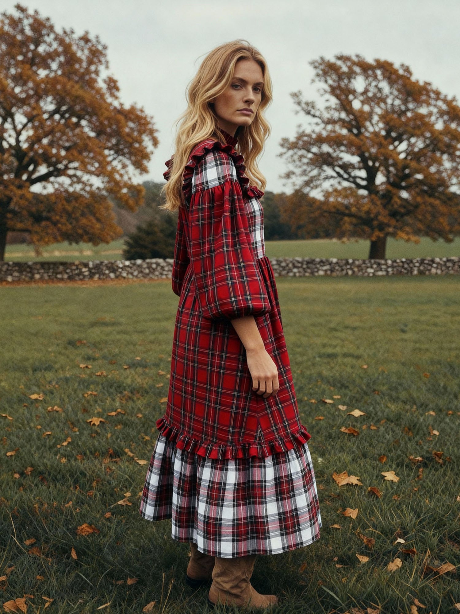 The Rosalie Dress blends modern femininity with vintage-inspired charm, crafted for those who love pieces that feel special yet effortless. The silhouette is relaxed and easy to wear, with a softly gathered tiered skirt, a flattering high neckline and a detailed yoke finished with gentle ruffles. It moves beautifully, giving that floaty, romantic shape without feeling fussy.