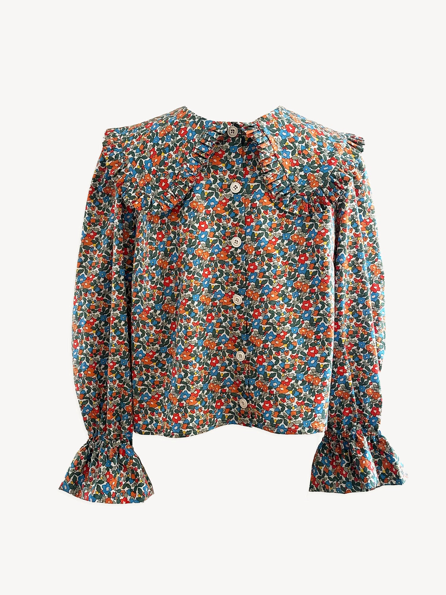 The Luna Blouse is a Well Worn signature, reimagined in vibrant deadstock cotton scattered with painterly florals. Its oversized ruffle collar and puffed sleeves with elasticated cuffs make it as romantic as it is wearable.